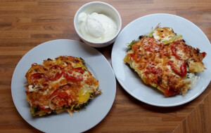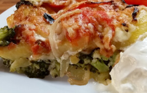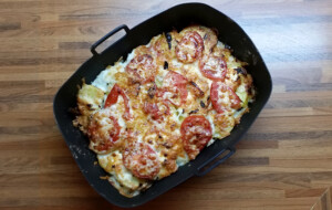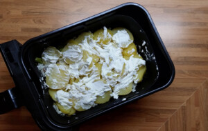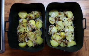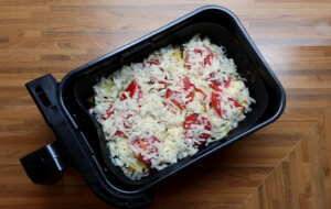 Den Auflauf mache ich ja oft und gern. Aber diesmal machte ich weiter mit dem Ausprobieren in der Heißluftfritteuse. Und ja, das funktioniert tatsächlich super!