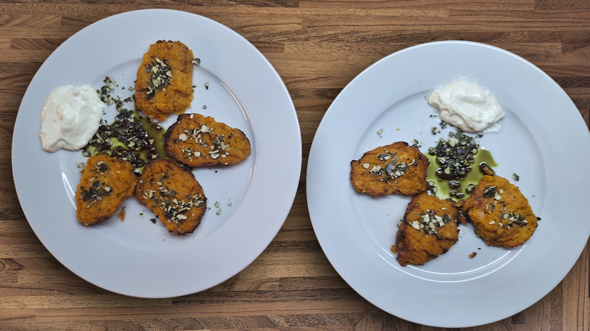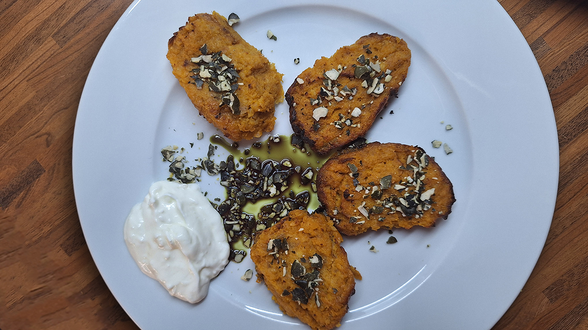 Gebratene Kürbis-Polenta-Nockerl vom Butternuss aus der HLF mit gehackten Kürbiskernen auf Kürbiskernölspiegel hlfkürbiskürbiskernekürbiskernölmaisgrießpolenta By lintschi5. Oktober 2025GemüseLeave a Comment on Kürbisnockerl